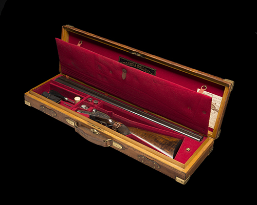 Provenance: The makers have kindly confirmed that the gun was completed as a '10-bore Royal hammerless 'AB' ejector gun, top lever, top safety, 31" steel barrels, L. full choke, special rib, R. Mod choke'. It was 'finished at factory' on the 15th September 1903 for 'Lash'