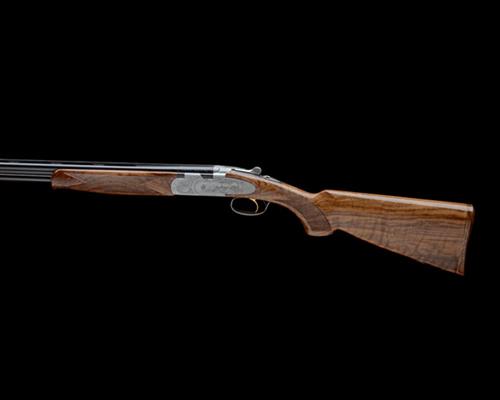30in. nitro barrels with 5mm ventilated matt top-rib, 2 3/4in. chambers, multichokes (with spares), hold-open toplever, automatic safety with integral barrel selector switch, gold-washed single-trigger, floral acanthus scrollwork set against a matt background, the decorative sideplates engraved with game scenes, bright finish, 14 3/8in. pistolgrip stock including wooden buttplate, weight 6lb. 5oz., in its makers universal case