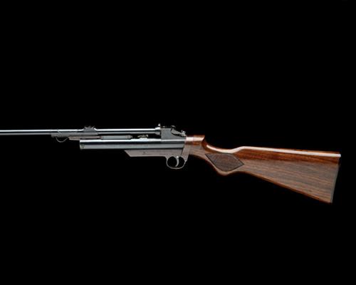 early type circa 1935, with blued detachable matching number barrel held by a flat-spring, the barrel stamped '.22 CALIBRE' below the rear-sight, turned-down bolt handle barrel lock, blued air-chamber marked 'WEBLEY SERVICE AIR RIFLE MKII' on the left and five lines of patents on the right, trigger unit with side safety, back of receiver with 'L' shaped folding peep-sight, walnut butt-stock with chequered saw-handled grip, grooved hard-rubber heel-plate, the whole retaining virtually all its original finish (trigger unit turning 'purple')