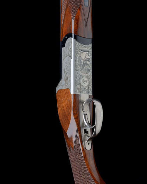 28in. nitro barrels with 10mm ventilated matt top-rib and ventilated mid-rib, 3in. chambers, multi chokes (no spares), hold-open toplever, manual safety with integral barrel selector switch, game and scroll engraving, bright finish, 14 3/8in. figured pistolgrip stock including wooden buttplate, weight 7lb. 3oz.