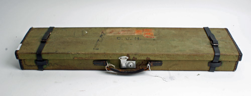 A CANVAS AND LEATHER SINGLE GUNCASE, fitted for 30in. barrels, the interior lined with green baize