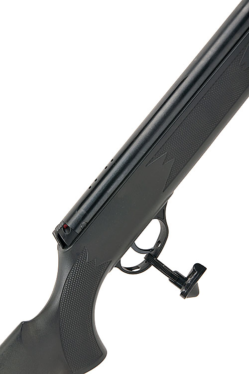 A ,22 BREAK-BARREL AIR-RIFLE SIGNED 'WEBLEY', MODEL 'VMX BLACK', serial no. 061323363, with 17in. sighted barrel, railed air-chamber with rear-mounted safe and black abs plastic half-stock, appearing little used