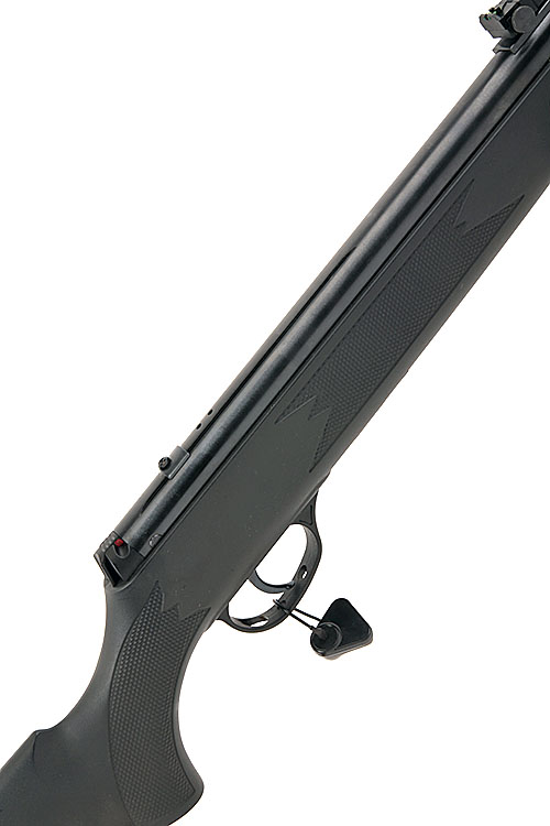 AN FAC RATED .22 BREAK-BARREL AIR-RIFLE SIGNED 'WEBLEY', MODEL 'VMX BLACK', serial no. 061323379, with 17in. sighted barrel, railed air-chamber with rear-mounted safe and black abs plastic half-stock, appearing little used