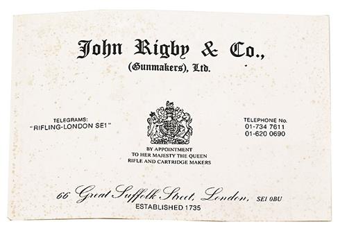 A JOHN RIGBY & Co. TRADE LABEL Please click HERE to view Terms & Conditions. Estimate £20-30