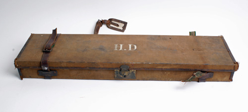 A GUNMARK LEATHER SINGLE GUNCASE, fitted for 30in. barrels, the interior lined with green baize, brass lock (key missing)