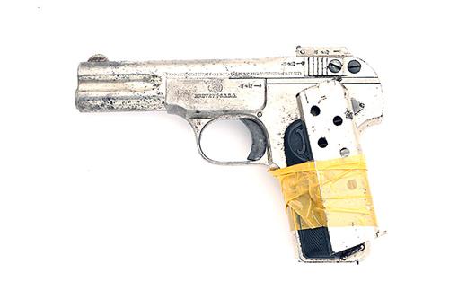 ** A 7.65 (.32 ACP) SEMI-AUTOMATIC PISTOL SIGNED FN ,MODEL 1900 BROWNING serial no. 286624 with 4in barrel with its hard- rubber factory grips with FN monogram retaining traces of its nickel plated finish (remainder polished bright) together with a spare magazine.
