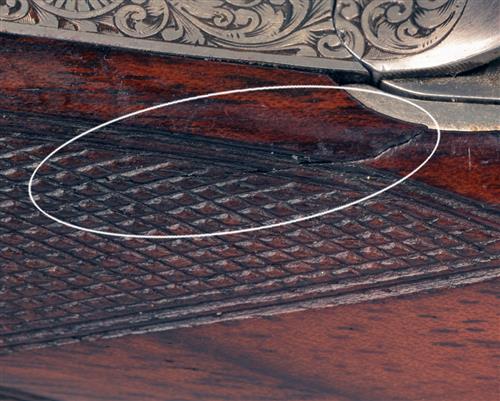 30in. nitro barrels signed 'Wilfra Armi' with 6mm ventilated matt top-rib, 2 3/4in. chambers, bored approx. 1/2 and 3/4 choke, hold-open toplever, automatic safety, non-selective single trigger, detachable triggerplate action signed Bottega C. Giovanelli. inc. D. Cortini.', the action and furniture engraved with acanthus scrollwork, the decorative sideplates engraved with scenes of woodcock and partridge, 13 5/8in. figured stock (cracked at hand), weight 6lb. 9oz., in its leather case with canvas outer