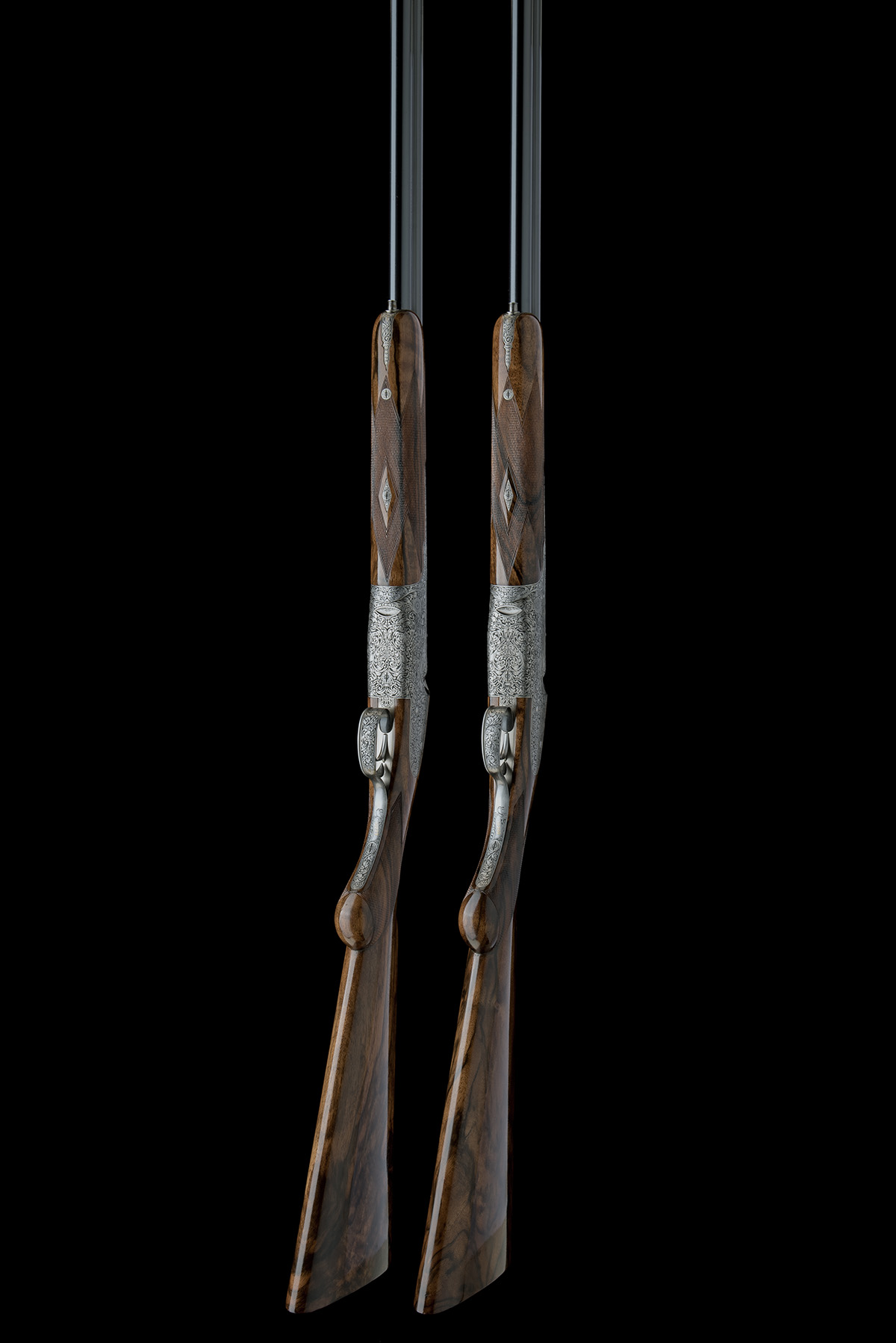 AN EXCEPTIONAL PAIR OF MILES-ENGRAVED 20-BORE ROUND-BODIED SINGLE-TRIGGER OVER AND UNDER SIDELOCK EJECTORS, serial no. 10239 / 40,