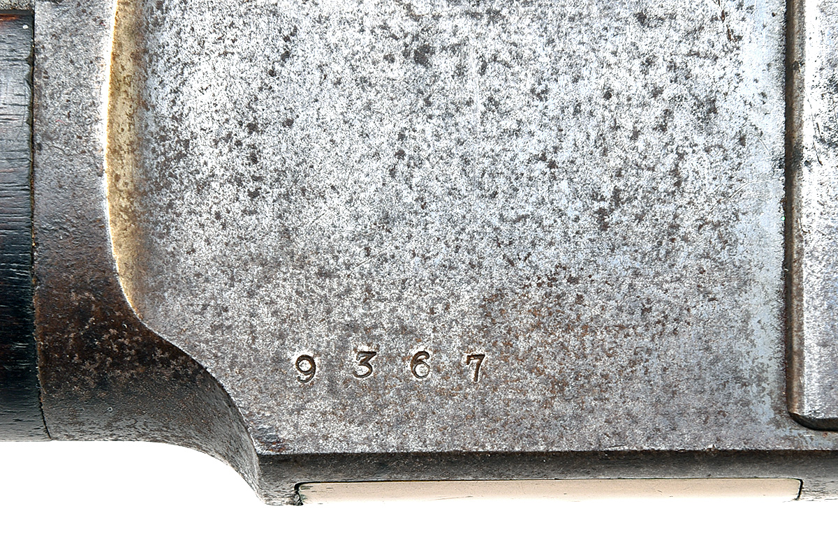 for 1881, with round 20in. barrel, the top signed by the maker and with patent dates of '1866' & '1860' and further signed 'TRULOCK & HARRISS, 9 DAWSON ST. DUBLIN', block and blade fore-sight, twin blade 'L' shaped carbine rear-sight, period London proofs, the receiver with further signature from the retailer to the left side, loading port to the right, automatic retracting dust-cover with applied guide-rail to receiver top, exposed hammer, top-tang without provision for a peep-sight and marked 'MODEL 1873', loose saddle-ring, walnut butt, the iron carbine heel-plate with central trap containing the original dismountable cleaning rod, brass cartridge lifter, walnut fore-end with single barrel band and full-length magazine with further band at nose, traces of finish