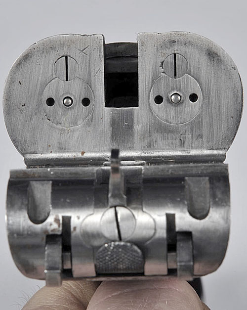 24in. nitro reproved chopperlump barrels, re-chambered for .450 No.2 3 1/2in. Eley nitro express, with acanthus scroll engraved sight-rib, open sights with folding leaf sights for 150, 200 and 300 yards, block-mounted gold bead foresight with flip-up moonsight and scroll engraved fold-over protector, sunken rib engraved 'WESTLEY RICHARDS & CO. ENGLAND.', treble-grip action incorporating J. Deeley and L.B. Taylor patent hand-detachable locks, patent no. 17731 of 28th July 1897, use number 1229, detachable floorplate, removable striker discs, bolted automatic safety with gold inlaid 'SAFE' and 'BOLTED' details, Westley Richards patent toplever, Westley Richards 'ONE TRIGGER' patent selective single trigger, triggerplate mounted with selector switch and gold-inlaid 'L' & 'R' details, fully engraved with best acanthus scrollwork surrounding relief-engraved vignettes of prowling lion and tiger, the floorplate with an Indian elephant, the triggerguard with a gaur, the triggerguard tang with a leopard, the toplever with a bear, the fences deeply carved in relief with orchid and acanthus foliage, brushed and blued finish overall, 14 3/4in. boldly-figured pistolgrip stock with chequered side-panels, acanthus scroll engraved strengthening teardrop plates, cheekpiece, sling swivels, fully scroll-engraved pistolgrip-cap (with trap), replacement escutcheon and including 7/8in. crocodile skin covered recoil pad, fore-end with Deeley & Edge patent release lever, the mounting plate and lever engraved with Blackbuck antelope, horn finial, weight 9lb. 11oz., in its very fine brass-cornered crocodile skin bound oak case, the interior lined in crocodile and velvet, with assorted ivory-handled tools and striker pot and fitted leather-bound velvet-lined case with the extra locks, each numbered '16758.2'