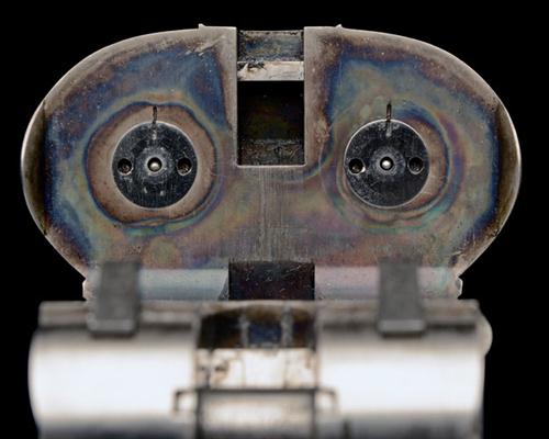 24in. nitro chopperlump barrels, gold-inlaid line details at breech end and muzzles, deeply matted sight rib with open sights and single folding leaf sight, gold-inlaid sight lines and marked for 40 and 100 metres, matted ramp-mounted gold bead fore-sight with flip-up moonsight and button release removable protector hood, the sunken rib gold-inlaid with the calibre designation in script, the tubes gold-inlaid 'J. PURDEY & SONS. LONDON. ENGLAND.', treble-grip action with side-clips, short side-bolsters, removable striker discs, manual bolted safety with gold-inlaid 'SAFE' and 'BOLTED' details, elongated top strap, gold-inlaid cocking-indicators, colour-hardened triggers, the front articulated, rolled-edge triggerguard, the action, pinless lockplates and furniture finely engraved with bold acanthus scrollwork on a finely matted background, interspersed with finely executed depictions of African game, the left side with portraits of hyena, hippopotamus and black rhino and two circular vignettes of African elephant with golden backdrops, the right side with portraits of hyena, hippopotamus and black rhino and two circular vignettes of cape buffalo with golden backdrops, the underside with circular gold-inlaid vignette depicting the head of a lion couchant, with further representations of vultures, African wild dog and warthog, the triggerguard with a blue crane and a kudu with central gold-highlighted vignette of a leopard, the triggerguard tang gold-inlaid with the serial number and with a crocodile at the tip, the toplever with a portrait of a giraffe, the fore-end finial with an African serval, the whole with occasional gold-inlaid sawtooth wave bordering, the triggerplate signed 'J. E. KULCZYK 08', 14 5/8in. highly-figured pistolgrip stock with cheekpiece, including 5/8in. leather covered recoil pad, bold acanthus scroll engraved steel pistolgrip-cap with gold-inlaid sawtooth wave bordering and gold-inlaid with the calibre designation, the trap engraved with the head of a gazelle, sling swivels with blued and engraved screw heads, slim beavertail fore-end with partially colour-hardened iron, gold-inlaid inside with the serial number, knuckle with further bold acanthus scrollwork, sawtooth wave gold inlay and with a small cartouche gold-inlaid 'PURDEY', weight 11lb. 13oz., in its lightweight leather case with accessories