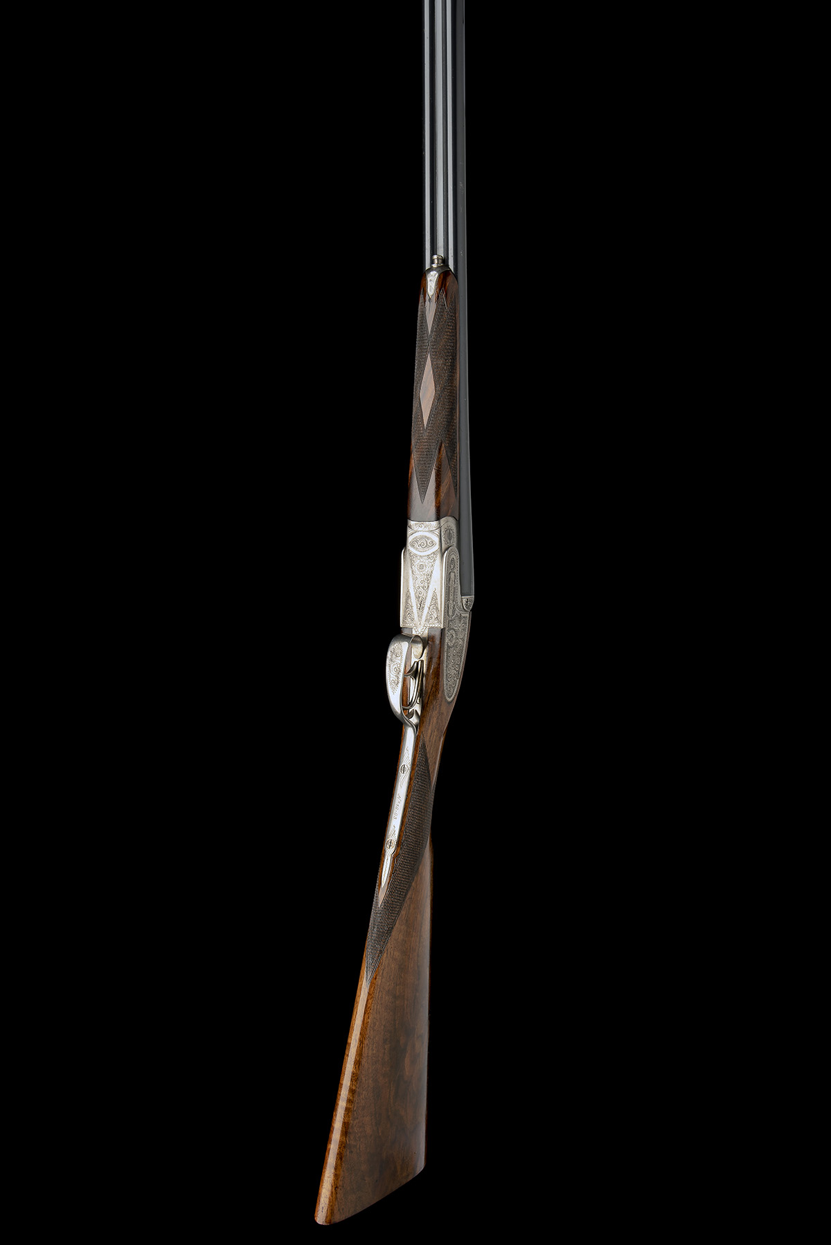 for 1996, 27in. nitro chopperlump barrels, 2 3/4in. chambers, bored approx. 1/4 and 3/4 choke, removable striker discs, automatic safety, border engraving, retaining much original colour-hardening and finish, 14 7/8in. stock, weight 5lb. 3oz.