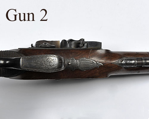 A CASED PAIR OF 38-BORE FLINTLOCK TRAVELLING PISTOLS, serial no. 166,