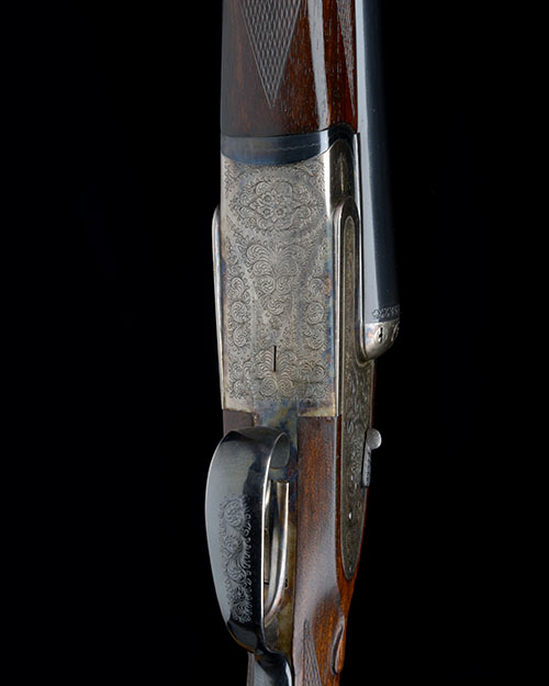 30in. nitro reproved chopperlump barrels (in 2017), 2 3/4in. chambers, bored approx.1/4 and 3/4 choke, treble-grip action with hidden third bite, removable striker discs, automatic safety, hand-detachable lockplates, cocking-indicators, acanthus scroll engraving, retaining traces of original colour-hardening and finish, 15 3/8in. stock, weight 7lb.