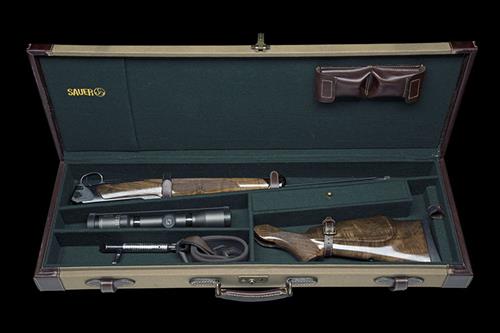 22 1/4in. fluted nitro barrel, serial no. N90154 with block-mounted open sights and ramp-mounted high-visibility fore-sight, threaded for a sound moderator (with thread protecting cap), the receiver mounted with a Zeiss Duralyt 2-8x42 telescopic sight, serial no. 03952435, in quickly-detachable mounts, detachable box magazine, set trigger, blued finish, figured pistolgrip stock with cheekpiece, monte carlo comb, quickly-detachable sling mounts, 14 3/4in. pull including 3/4in. rubber recoil pad, weight 7lb. 12oz. (unscoped) and 9lb. 2oz. (with scope), in its canvas and leather take down case
