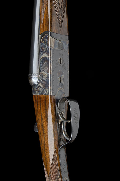 30in. nitro chopperlump barrels (dated 2011), proofed for steel shot to 1370 BAR, 2 3/4in. chambers, bored approx. imp. cyl. and 1/4 choke, border and partially scroll engraved action with removable striker discs, automatic safety, retaining virtually full original colour-hardening and finish, 14 7/8in. figured stock, weight 6lb. 4oz.