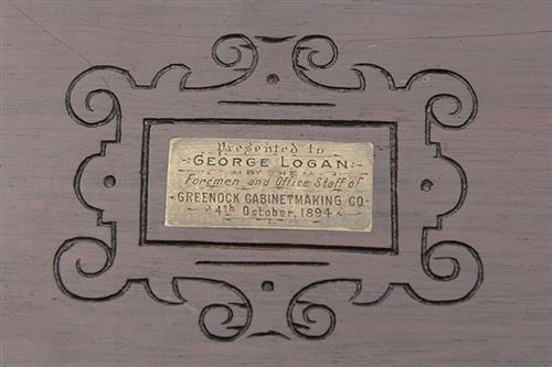 circa 1865, with 2 3/4in. octagonal barrel, the top-strap signed 'ADKIN, BEDFORD', borderline engraved plain front-locking cylinder, borderline engraved frame, lift-up hinged loading gate, one-piece chequered walnut grip, iron butt-cap, articulated rammer mounted to right hand side of barrel and sheathed single action trigger, re-finished, together with a slightly later mahogany case adapted for this revolver, re-lined in green velvet and complete with a turnscrew, the lid with rectangular brass escutcheon engraved 'PRESENTED TO GEORGE LOGAN BY THE FOREMAN AND OFFICE STAFF OF GREENOCK CABINETMAKING CO, 4TH OCTOBER 1894'