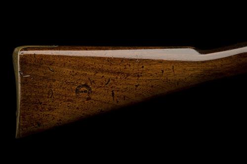 dated for 1862, with rifled 39in. iron barrel, block and blade fore-sight, elevating ladder rear-sight, 'L.A.C.' inspectors stamps and commercial London proofs at breech, plain military type lock signed on the bar 'L.A.Co 1862' and with crown over V.R. device to tail, walnut three-quarter stock with brass furniture, provision for three iron barrel-bands (middle example absent) and iron jag-ended ramrod