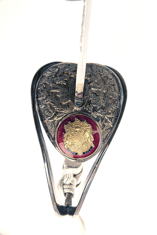 manufactured 1981 in a limited edition of 1000, with 32in. double edged diamond shaped blade etched with flowers and vines and the crests of the families of Prince Charles and Lady Diana, also inscribed 'TO COMMEMORATE THE MARRIAGE OF THE PRINCE OF WALES AND LADY DIANA SPENCER-29 JULY 1981', the silver-plated hand guard of heart shape and engraved with thistles and a variety of other floral decorations, overlaid with a gold crest on a red enamelled ground, split knuckle bow moulded with the names of the couple in relief and round pommel with fine enamelled crests of both families surmounted by a bell-shaped finial, accompanied by a silver sword knot (not supplied with a scabbard)