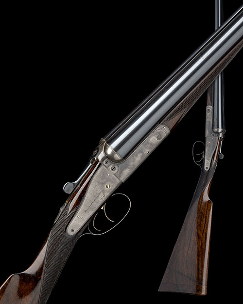 28in. nitro barrels, tubes engraved 'HOLLAND & HOLLAND. 98. NEW BOND STREET. LONDON.', 2 1/2in. chambers, bored approx. imp. cyl. and 1/4 choke, action with patent gas checks, automatic safety with gold-inlaid 'SAFE' detail, gold-inlaid cocking-indicators, border engraving, retaining traces of original colour-hardening, 14 3/4in. stock, slightly swept at comb, including 1in. wooden extension, fore-end with Deeley & Edge patent release, weight 6lb. 9oz.