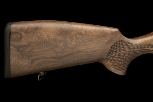 22 1/4in. cold-forged steel nitro barrel with block-mounted adjustable open sights with fibre optic inserts, ramp-mounted sprung high visibility fore-sight, titanium finish action with border and oak leaf detailing, detachable box magazine, set trigger, 14 1/4in. pistolgrip stock with cheekpiece, hogsback comb, quickly-detachable sling swivels and including 1/2in. rubber recoil pad, weight 7lb. 5oz., in its padded fabric 'Integrale' case with paperwork and original cardboard carton