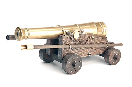 A TRIO OF DECORATIVE BRASS-BARRELLED MODEL CANNON FOR DISPLAY (3)