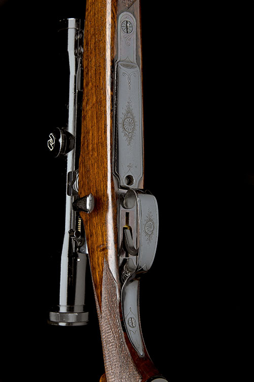 19in. nitro reproved barrel (in 2017), engraved 'FRITZ ALBRECHT R.S. ALBRECHTS - SUHL', the knoxform engraved 'K. BURGSMULLER - BERLIN CHARLOTTENBURG 5.', open sights and one folding leaf sight (unmarked) and ramp-mounted bead fore-sight, the receiver (with thumb cutout) mounted with a Zeiss Diatal-Z 4x32 T* telescopic sight, serial no. 1525337, in quickly-detachable mounts, chequered butterknife bolt handle, detachable floorplate with military style release, partial border and acanthus scroll engraving, blued finish, figured full length pistolgrip stock with cheekpiece, horn pistolgrip-cap, sling swivels, schnabel fore-tip, 13 1/8in. pull including rubber buttpad, weight 6lb. 6oz. (unscoped) and 7lb. 5oz. (with scope)