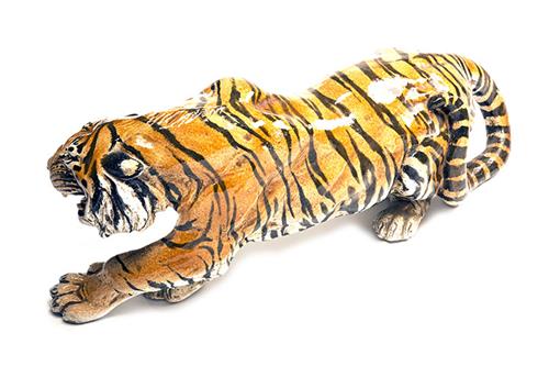 A LARGE ANTIQUE PORCELAIN PROWLING TIGER,
