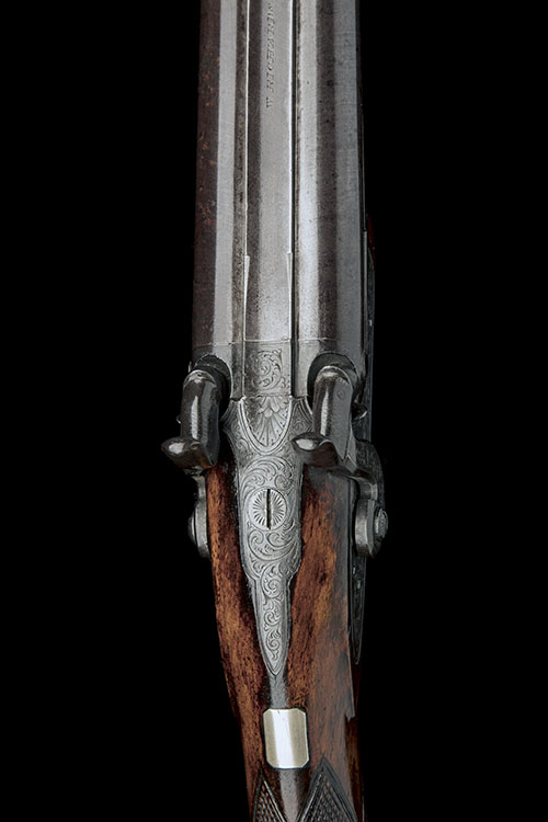 * A LONG-BARRELLED 12-BORE PERCUSSION DOUBLE-BARRELLED SPORTING-GUN SIGNED 'W. RICHARDS', no visible serial number,
