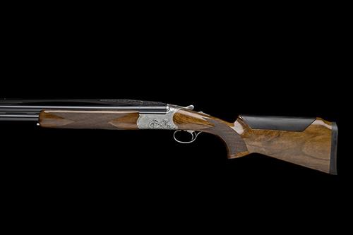 30in. nitro reproved barrels (in 2017) with side scroll-engraved raised file cut rib, ventilated mid-rib, 2 3/4in. chambers, Guerini 'Maxichoke Sporting' extended multichokes (no spares), scoop-back rounded bar action with hold-open toplever, manual safety with integral barrel selector switch, adjustable trigger, profusely engraved with acanthus scrolls and carved with stylised art nouveau floral and foliate designs on a matt background, triggerplate signed 'Bottega C. Giovanelli', silver finish, 14 1/2in. pistolgrip stock with Guerini 'no impact' soft rubber comb and 5/8in. rubber recoil pad, weight 8lb. 9oz.