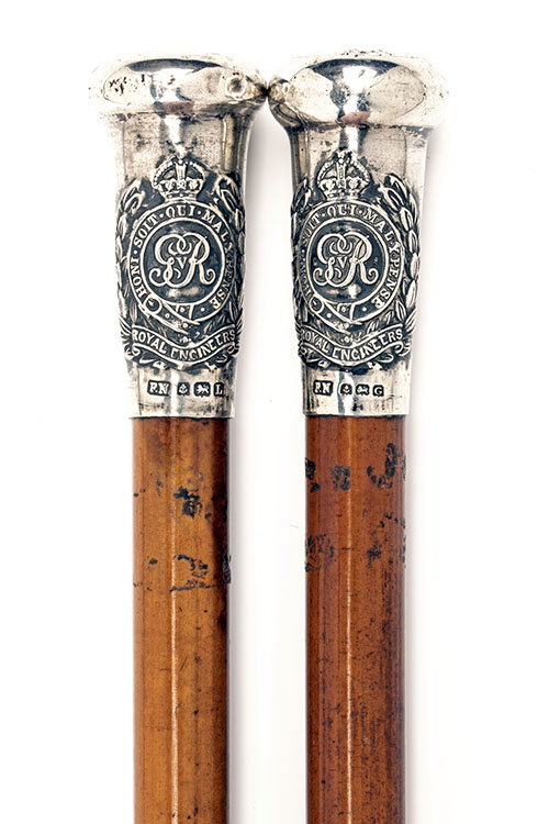 A PAIR OF PRESENTATION SILVER-MOUNTED SWAGGER-STICKS TO THE ROYAL ENGINEERS,