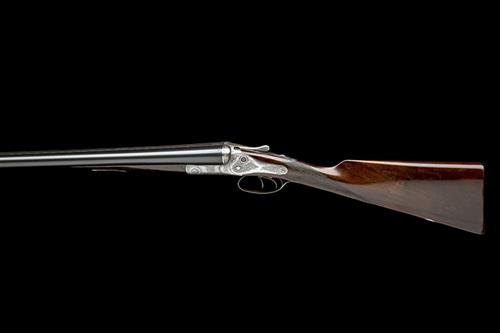 30in. nitro reproved barrels, rib engraved in gothic script 'J. RIGBY & CO. 43 SACKVILLE STREET. LONDON.W.', 2 1/2in. chambers, bored approx. 1/4 and 3/4 choke, W. & M. Scott and T. Baker patent barrel-cocking hammerless action, patent no. 761 of 1878, use number 95, W. & C. Scott patent toplever spindle, W. & C. Scott patent automatic block safety, Scott patent crystal cocking-indicators, patent no. 3223 of 1875, border and acanthus scroll engraving, the action flats marked 'THE PREMIER HAMMERLESS' and with the Scott trademark, brushed bright finish, 14in. stock, fore-end with grip-catch release lever, weight 6lb. 7oz.