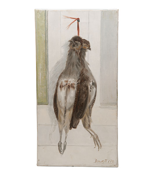 DRUIE BOWETT (1924-1998) A SET OF THREE ORIGINAL OIL ON CANVAS PAINTINGS OF HANGING GAME,