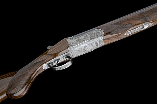 29 1/2in. nitro barrels with 9mm matt top-rib, 2 3/4in. chambers, bored approx. 1/4 and 3/4 choke, hold-open toplever, automatic safety with integral triggerplate release catch, engraved with acanthus scrollwork surrounding game scene vignettes, signed 'D. Bonsi', brushed finish, 14 1/2in. figured semi-pistolgrip stock including 5/8in. rubber recoil pad, weight 7lb. 11oz