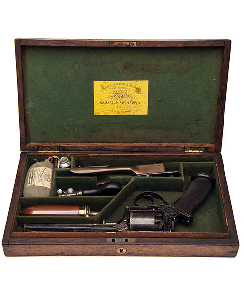 A FINE HISTORIC CASED 54-BORE PERCUSSION REVOLVER, MODEL 'ADAMS PATENT', serial no. 12962R,