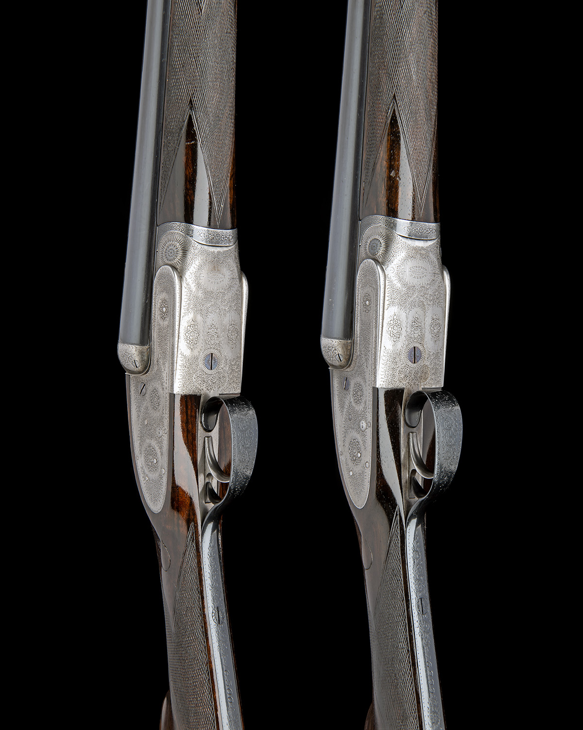 Provenance: The makers have kindly confirmed that this pair was completed in October 1898 as a pair of single trigger hammerless ejector guns, for Colonel Collingwood.