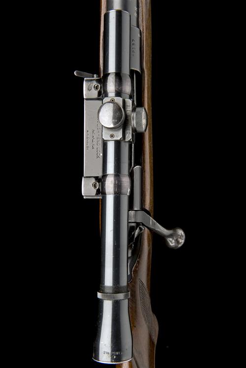 26in. nitro reproved barrel engraved 'MADE IN NEW HAVEN, CONN. U.S. OF AMERICA - WINCHESTER PROOF STEEL - WINCHESTER TRADE MARK - MODEL 70 - .300 MAGNUM', folding open sights, ramp-mounted bead fore-sight, the receiver side mounted with a Lyman Gun Sighting Corp. 'ALASKAN ALL WEATHER' 2 1/2 power telescopic sight, serial no. 44825, on a W.H. English 'ENGLISH END-LOCK' marked quickly-detachable rail, Pre-64 Winchester Model 70 action (serial number dates to approx. 1948), hinged floorplate with push button release, pistolgrip stock with sling eyes, 13 5/8in. pull including 1in. rubber recoil pad, weight 8lb. 7oz. (open sights) and 9lb. 4oz. (telescopic sight)