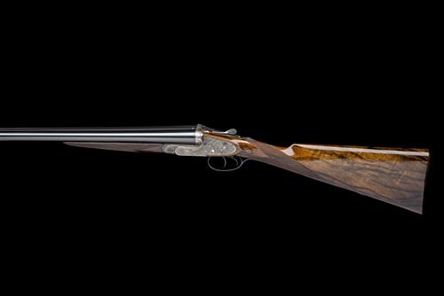 28 1/8in. nitro reproved (in 2018) Whitworth-steel chopperlump barrels, rib engraved 'JAMES WOODWARD & SONS. 64. ST. JAMES'S STREET. LONDON. S.W. MADE OF SIR JOSEPH WHITWORTH'S FLUID PRESSED STEEL', and gold-inlaid '2' at the breech end, 2 3/4in. chambers, bored approx. 1/4 and 1/2 choke, left wall thicknesses well below recommended minimum, action with carved arcaded fences, removable striker discs, toplever gold-inlaid '2', automatic safety with gold-inlaid 'SAFE' detail, gold-inlaid cocking-indicators, best fine acanthus scroll engraving with floral bouquets, retaining traces of renewed colour-hardening and finish, 15 3/4in. replacement stock with ink enhanced figuring, replacement fore-end wood, weight 6lb. 8oz.