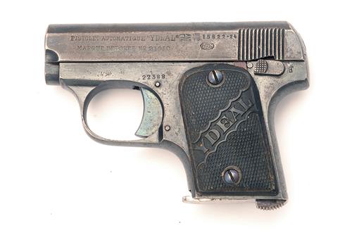 A .25 (ACP) SEMI-AUTOMATIC POCKET-PISTOL SIGNED YDEAL, MODEL 'PATENT', serial no. 22388, with 2in. barrel, hammerless slide with pop-up cocking indicator, blued frame and chequered hard rubber grips