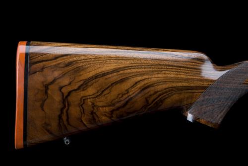 "This Daniel Fraser was part of a three-gun battery that I took to Southern Africa in 2010, along with heavy bolt-action and a double rifle; thin skinned plains-game as well as a number of the big-five were on my list of quarry. The Daniel Fraser took three animals, all with single shots; a large Burchell's Zebra stallion, a heavily-bodied Blue Wildebeest, and a cull Impala which fed the bush camp for a couple of days. All animals were effectively despatched using heavy (175 grain) round-nosed conventional jacketed bullets, as has been the long-standing traditional fodder of this classic calibre for years. In order to prove the effectiveness of the weapon and ammunition combination my son took his first highland stag (a cull Summer switch) only a matter of seven months previously at Assynt in Sutherland, Scotland."