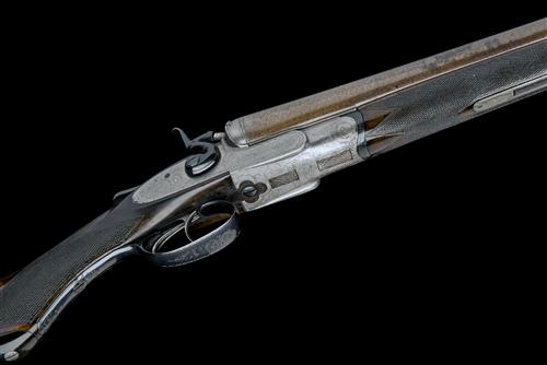 30in. nitro reproved twist barrels, broad rib re-engraved 'F.W. ROBERTS. MAKER LONDON & BIRMINGHAM', 2 1/2in. chambers, bored approx. true cyl. and 1/4 choke, treble-grip action with slim carved serpentine fences, Bentley patent push down toplever, patent no. 11625 of 26th August 1884, broad strikers, rebounding sidelocks with carved hammers, border and acanthus scroll engraving, the rear of the lockplates with oval vignettes of game birds, brushed and reblued finish overall, 14 1/8in figured semi-pistolgrip stock with domed pistolgrip-cap and ornately carved buttplate, fore-end with horn finial and Deeley & Edge patent release, weight 7lb. 3oz.