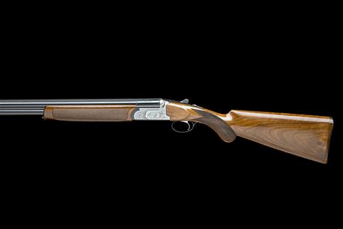 29 1/4in. nitro barrels with 8mm solid matt top-rib, 3in. chambers, bored approx. 1/4 choke in both, hold-open toplever, automatic safety with integral barrel selector switch, acanthus scroll engraving surrounding vignettes of game, brushed finish, 14 1/2in. semi-pistolgrip stock (small crack at hand) including 1/4in. wooden extension, weight 6lb. 4oz.