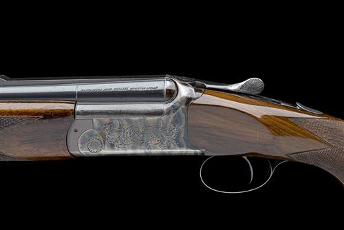 29in. nitro reproved barrels with stepped 11mm ventilated matt top-rib, 2 3/4in. chambers, underbarrel with multichoke (no spares), over barrel fixed 3/4 choke, hold-open toplever, manual safety with integral triggerplate release catch, rolled-edge triggerguard, acanthus detailing, retaining much cyanide-hardened finish, 13 1/2in. pistolgrip stock including 3/4in. rubber recoil pad, weight 8lb. 1oz.