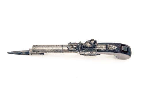 A 50-BORE FLINTLOCK POCKET-PISTOL WITH FOLDING BAYONET, no visible serial number,