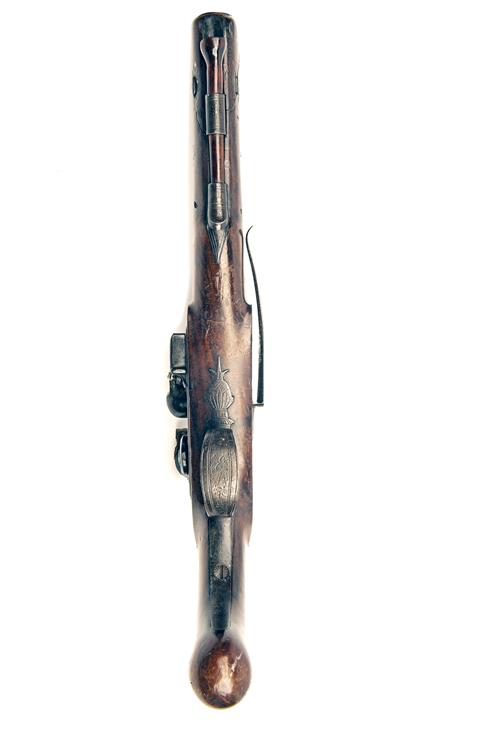 A 16-BORE FLINTLOCK OFFICER'S PISTOL, no visible serial number,