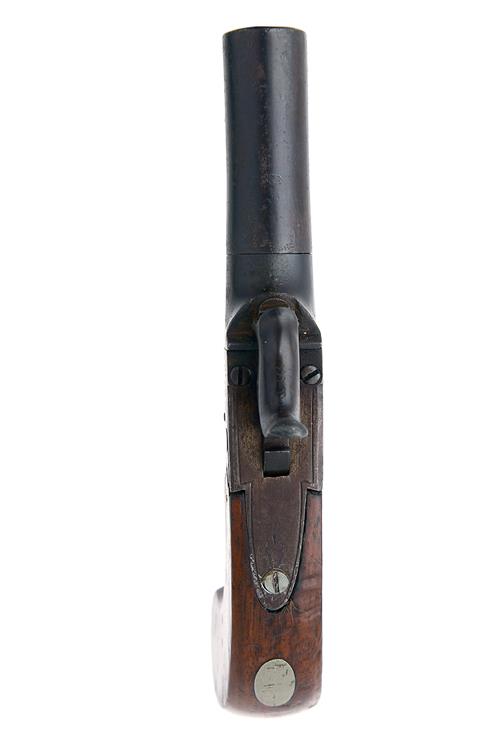 A 40-BORE PERCUSSION BOXLOCK POCKET-PISTOL SIGNED BLANKS, ROCHESTER, no visible serial number, circa 1845, with round turn-off 1 3/4in. barrel, squared central hammer action with guarded trigger and slab-sided walnut butt, Birmingham proofs
