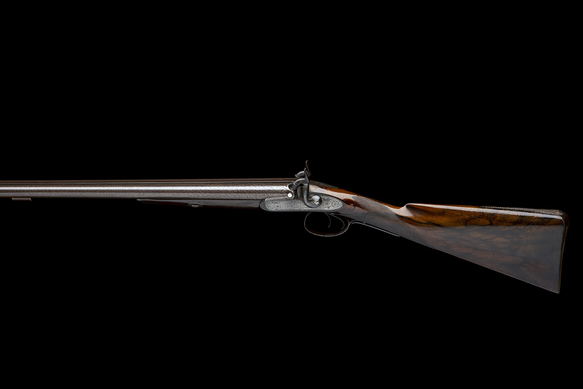A CASED 12-BORE PERCUSSION DOUBLE-BARRELLED SPORTING-GUN, serial no. 2322,