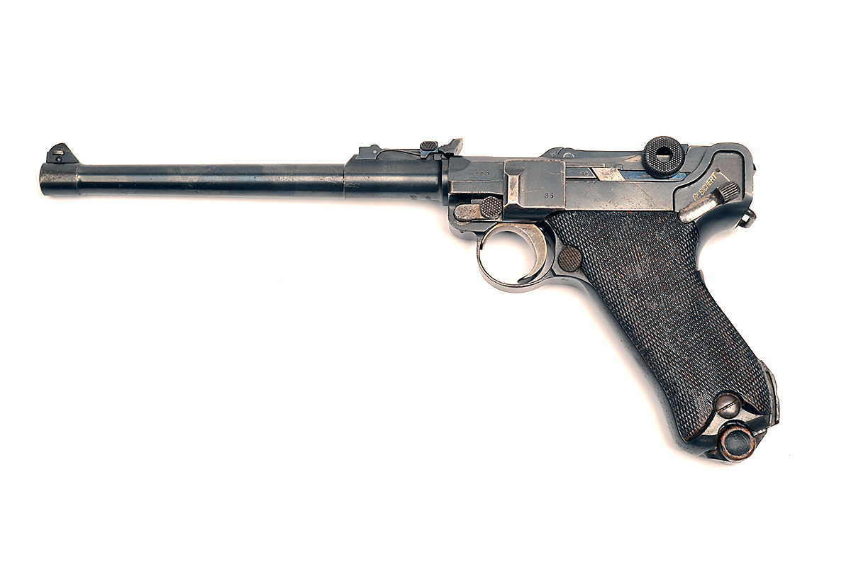 DWM 9mm (PARA) MODEL 'PO8 LANGE' OR 'ARTILLERY LUGER' SEMI-AUTOMATIC SERVICE PISTOL, serial no. 486, dated for 1916, with blued 8in. barrel, adjustable rear-sight, blued frame and receiver, chequered walnut grips, all matching numbers except magazine