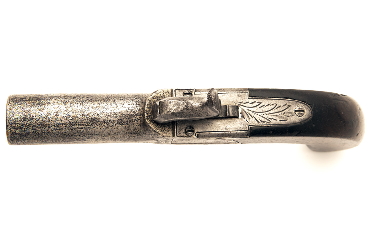 A RARE OVERSIZED 10-BORE PERCUSSION POCKET-PISTOL, no visible serial number,