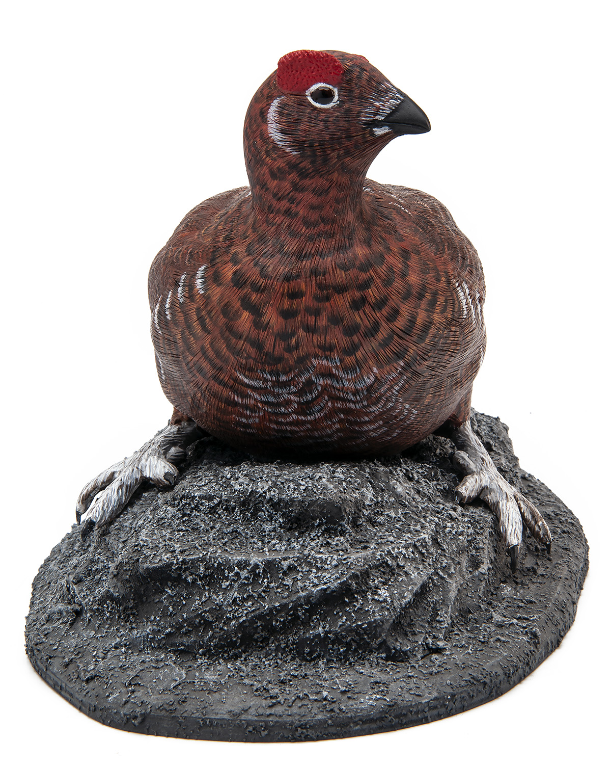 MIKE WOOD A FINE HAND CARVED AND PAINTED LIFE-SIZE GROUSE,